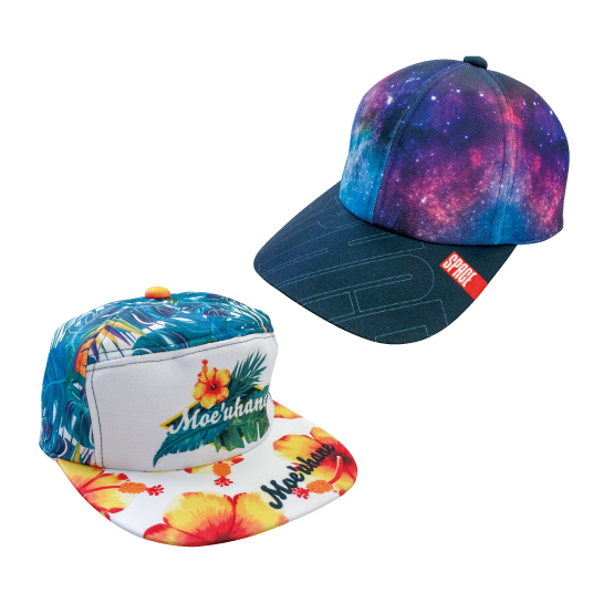 印刷会社だからできるフルプリントキャップです。生地をパーツごとに印刷し縫製することで世界で一つだけのキャップの製作が可能です。