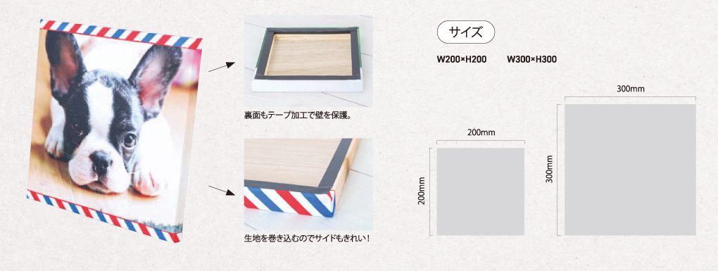 写真一つで作成可能なオリジナファブリックパネルです。イラストでも作成可能です。国内の提携工場にて熟練の職人により巻き込み張加工を行います。表だけでなく、裏面の仕上がりも非常に綺麗です。